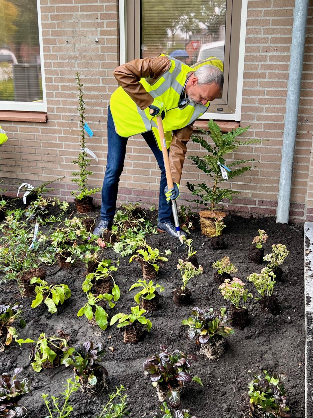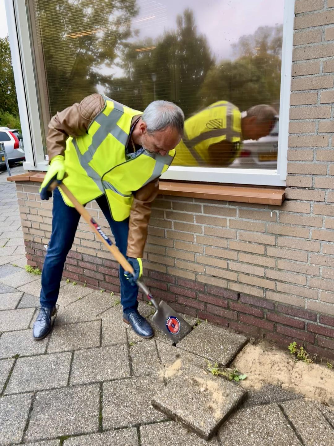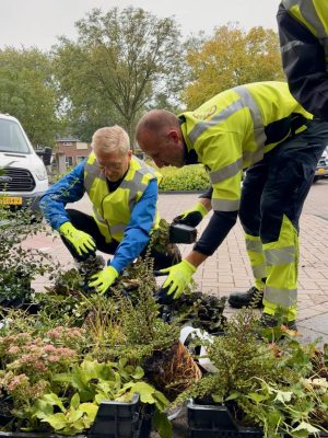 Deze week helpen de wethouders mee met het project ‘van grijs naar groen’, ook wel tegelwippen genoemd. Het doel van het project is het inwisselen van tegels voor gras, bomen en bloemen. Op die manier beschermen we het landschap tegen weersextremen, zodat we minder last hebben van hitte en stortbuien.