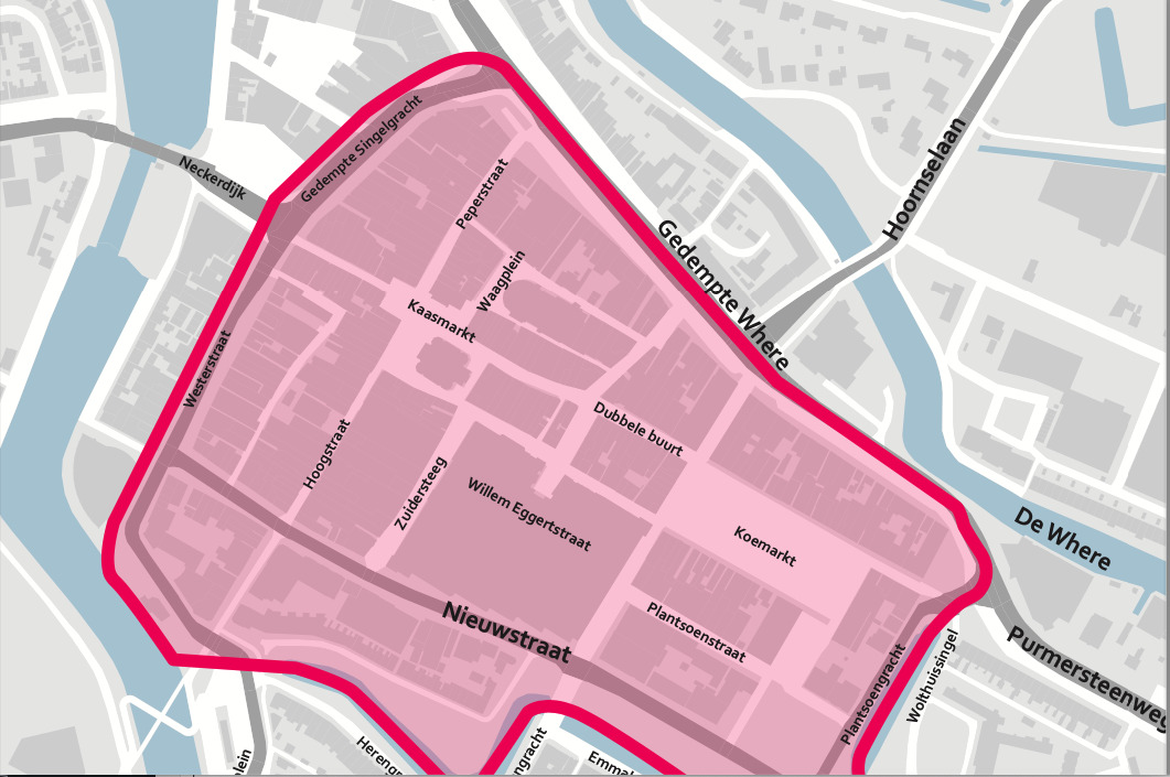 Het besluit geldt van 18 tot en met 22 oktober in het centrum van Purmerend zoals aangegeven op de kaart