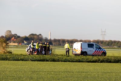 De politie heeft daarom met een helikopter gezocht naar de man. Alsmede in de omgeving van de auto. Hij is niet aangetroffen. Niemand raakte gewond bij het ongeluk.