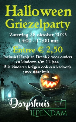 Op zaterdag 28 oktober kun je – als je niet ouder bent dan 12 jaar – gezellig komen griezelen tijdens de Halloween Griezelparty in Dorpshuis Ilpendam. Durf je (nog) niet alleen dan mag je gerust een volwassene meenemen.