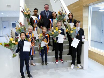 Angelina Rolman is begin dit jaar al gehuldigd voor maar liefst 23 medailles bij het zwemmen en daar is weer een fors aantal bijgekomen. Angelina (16 jaar) is inmiddels voor studie en sport verhuisd en kan helaas niet aanwezig zijn. De penning en oorkonde wordt door moeder in ontvangst genomen.