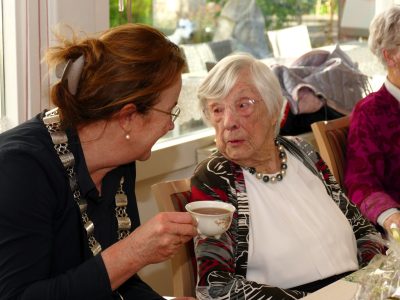 Francien vermaakt zich nog prima in de Tien Gemeenten, puzzelt graag en speelt nog regelmatig een potje patience op de ipad. Alleen dinsdagmiddag even geen spelletjes, maar een mooi en gezellig verjaardagsfeest met bloemen, cadeaus en een kopje thee met de burgemeester.