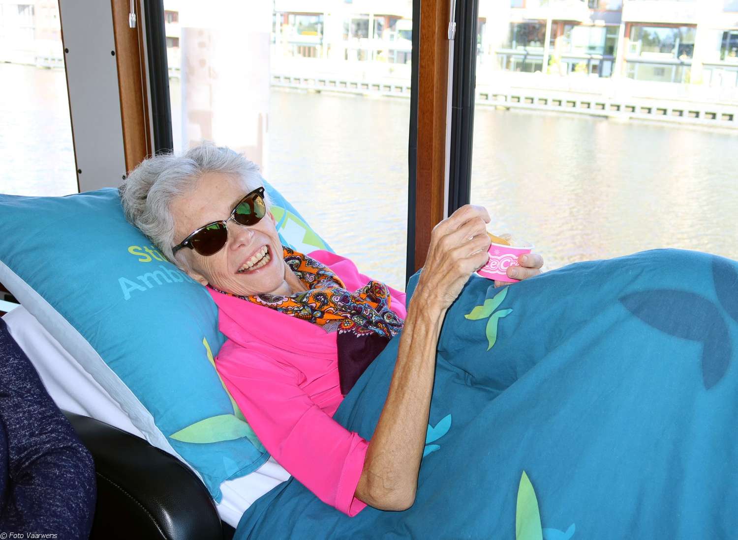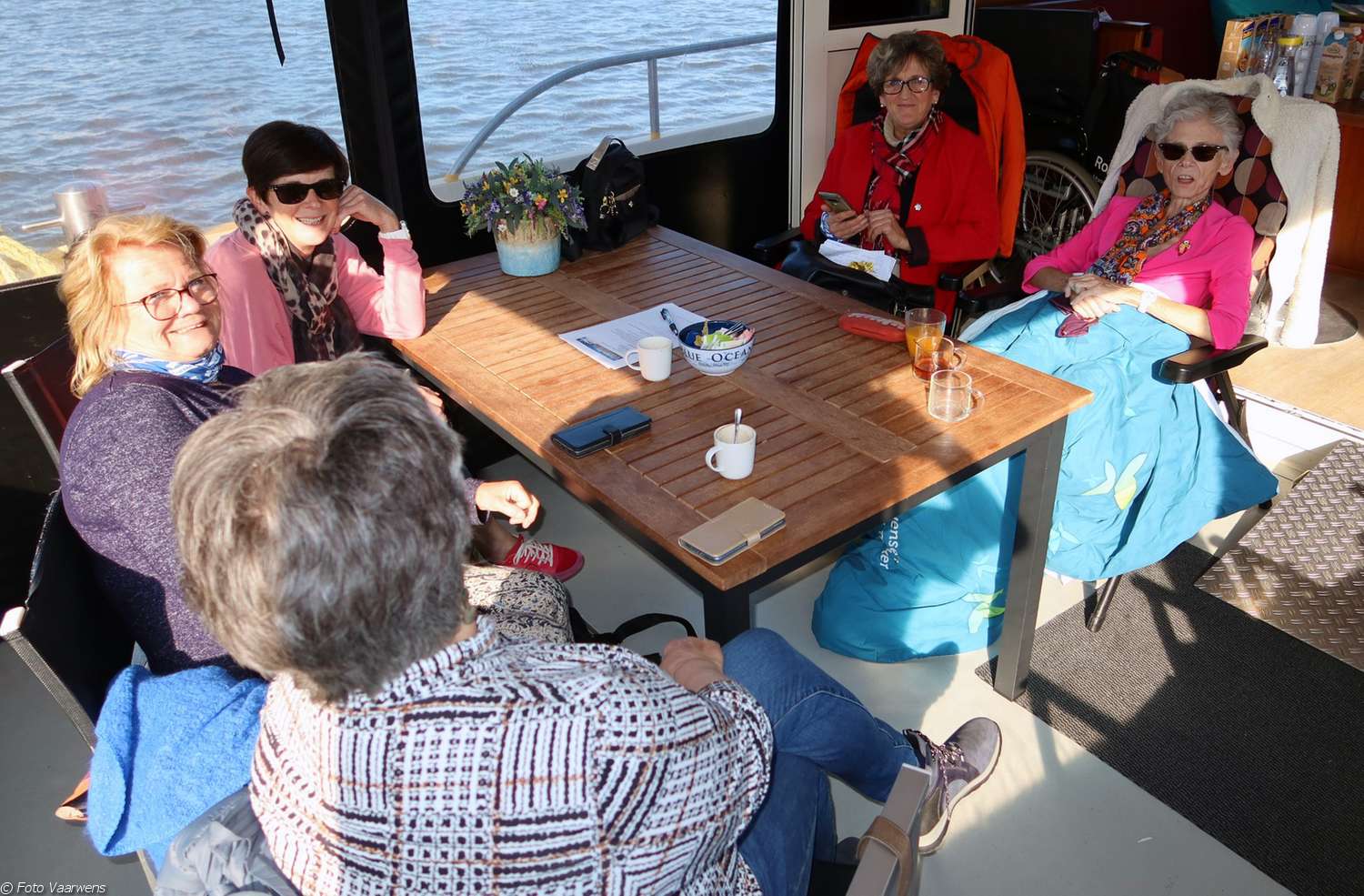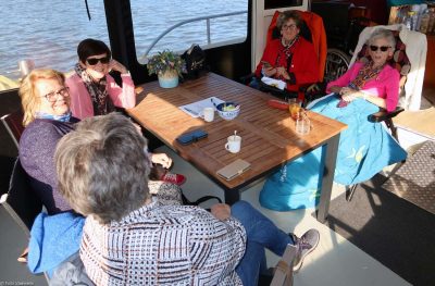 Onze vaargaste van vandaag is Josje (64 jaar). Zij is met haar jongere zusje Iné en haar vriendinnen Anja, Christie en Ria gekomen. Zij zijn haar allen dierbaar en hebben veel voor haar gedaan en betekend. Josje en haar vriendinnen hebben allemaal in de zorg gewerkt. Sommigen kent ze al 45 jaar. Helaas kwam in juli het slechte nieuws dat Josje uitgezaaide borstkanker heeft.