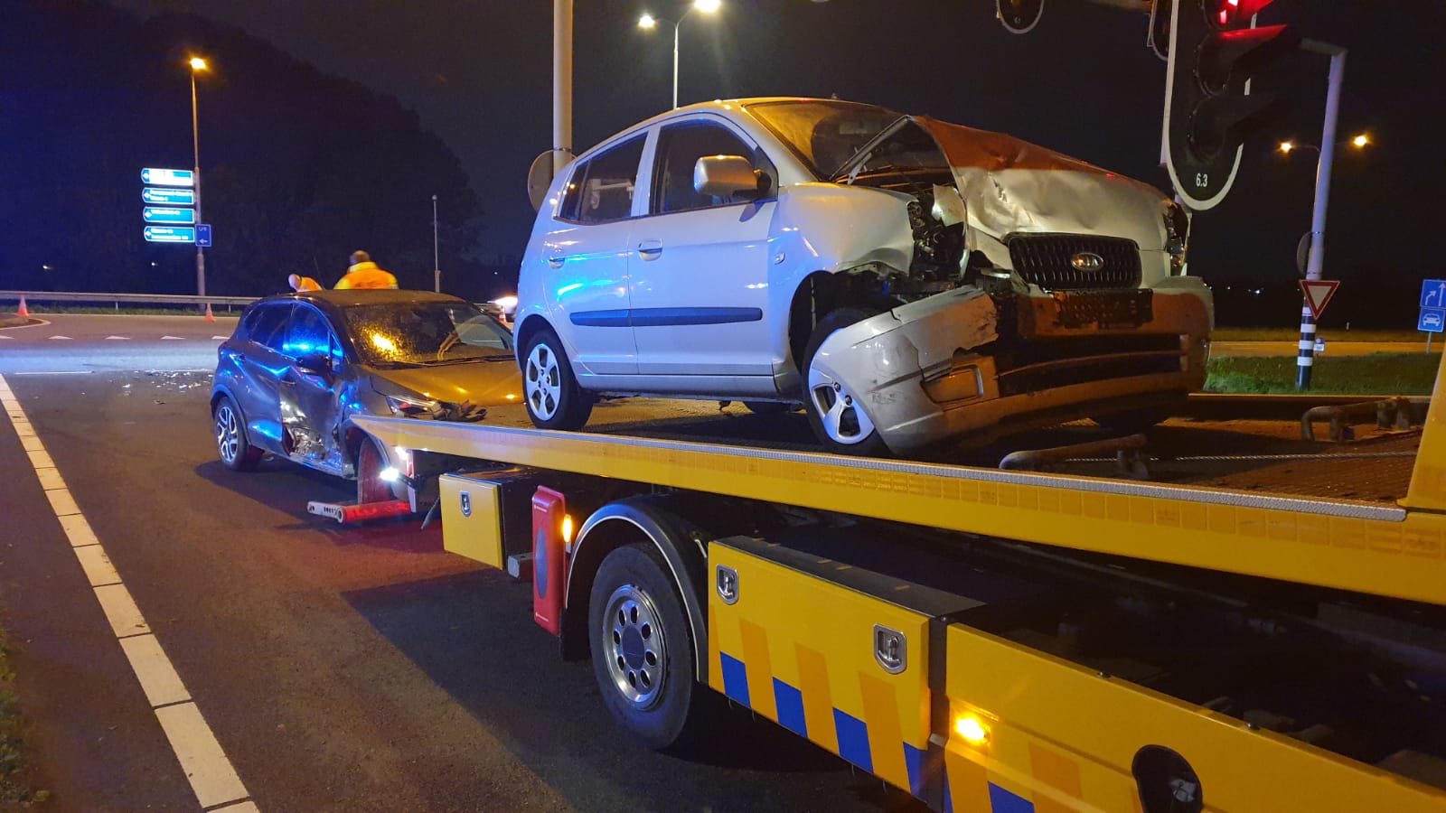 De wagens liepen flink wat schade op en zijn door een berger opgehaald.