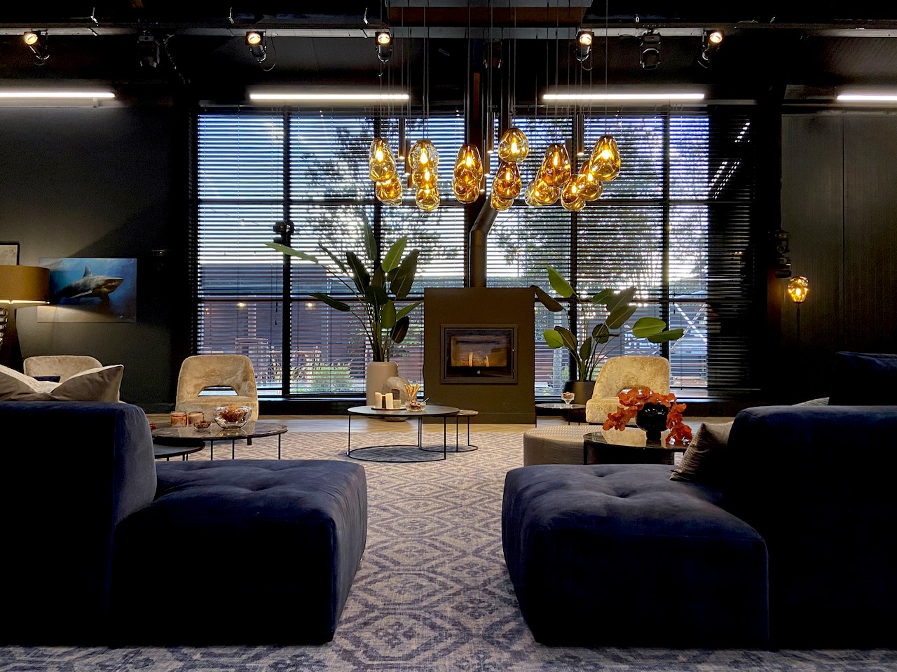 De enorme zelf samengestelde kroonluchter bestaande uit organisch gevormde glazen bollen maken van de zithoek een intiemer eiland. Grote gebaren passen bij de ruimte en mijn ideeën bij het neerzetten van een sfeer en zorgen er ook voor dat er voldoende rust en ruimte overblijft voor de spelelementen. Het programma is sinds een week dagelijks te zien op SBS6 en de reacties op de metamorfose van de loods zijn echt overweldigend positief.