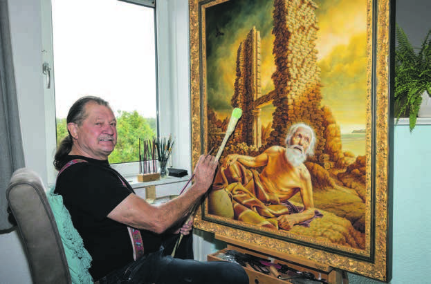 “Ik maak maar een schilderij per jaar omdat ik alleen in de winter schilder. Tijdens de zomer zit ik veel in mijn volkstuin, over een paar weken is dat afgelopen en dan begin ik weer met schilderen tot april/mei. Pas als ik tijd heb begin ik met denken over wat het gaat worden, het idee komt altijd vanzelf. Dan begin ik met een schets, soms komt er wat bij en gaat er weer wat af. Na een maand heb ik het schilderij in mijn hoofd en ga ik het maken.”