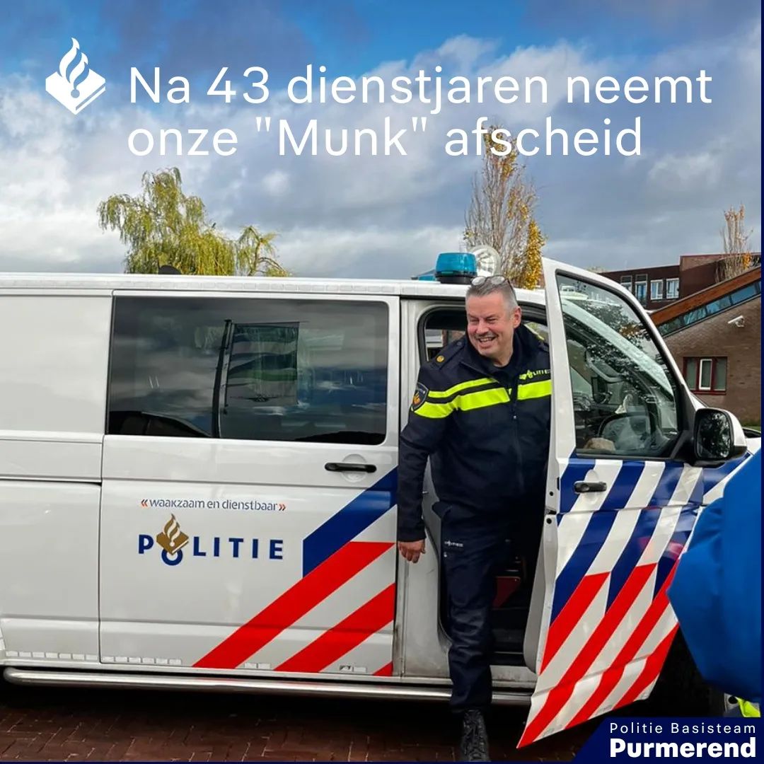 Na 43 dienstjaren neemt wijkagent Arien Munneke, ook wel bekend als “Munk”, afscheid.