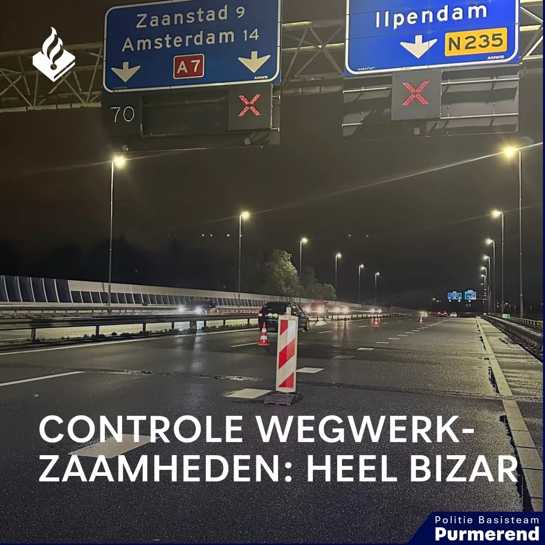 Gisteravond hield onze motorrijder een controle bij de hardwerkende wegwerkers op de A7.