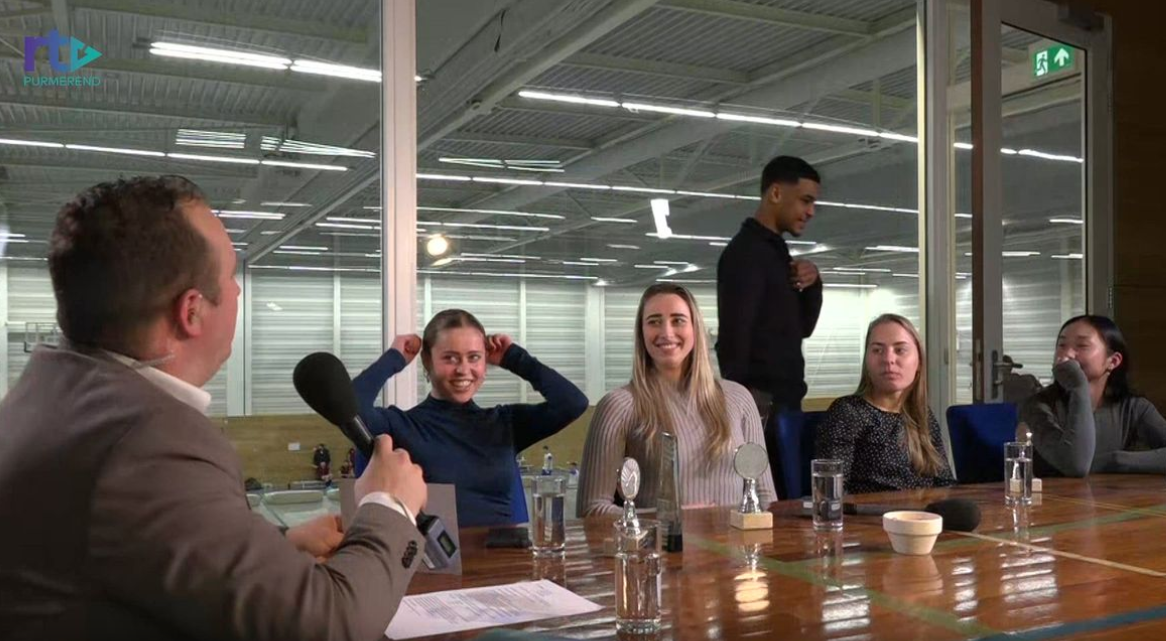 Het damesteam van Turncentrum Waterland over hun Sportaward Geplaatst op dinsdag 9 januari 2024 door admin bron: RTV Purmerend Mike Drost interviewt Verena Sens, Rosalie de Boer, Megan Jacobs, Luna de Bruijn en Esmee de Nooijer na hun verkiezing tot beste sportteam van 2023 in Purmerend.