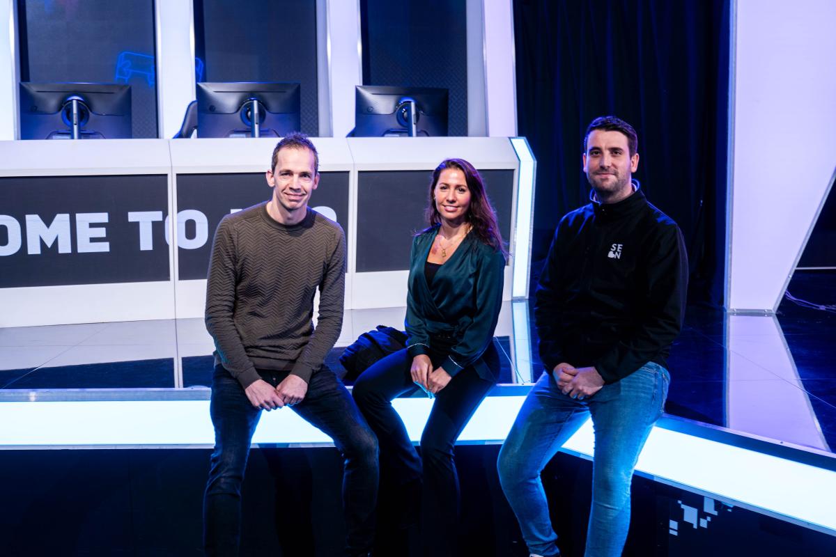 Op de foto staan behalve Petra: Dirk Tuip op links en aan de andere kant Erik Lauret van Samsung. De foto is gemaakt door Jade de Bie, beginnend content creator bij H20.