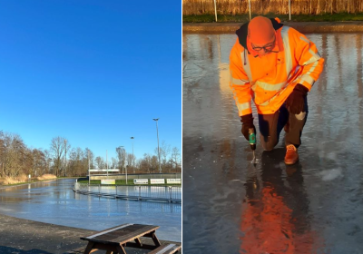 Vanmorgen heeft de ijsmeester wederom de dikte van het ijs gemeten. Er is een dikte tussen de 4,5 cm en 5,5 cm gemeten. Naar verwachting is dit voldoende dik om op te kunnen schaatsen vanavond tussen 18:00 uur en 21:30 uur. Overdag is niet mogelijk omdat de zon het ijs doet smelten in combinatie met de net iets te hoge buitentemperatuur.