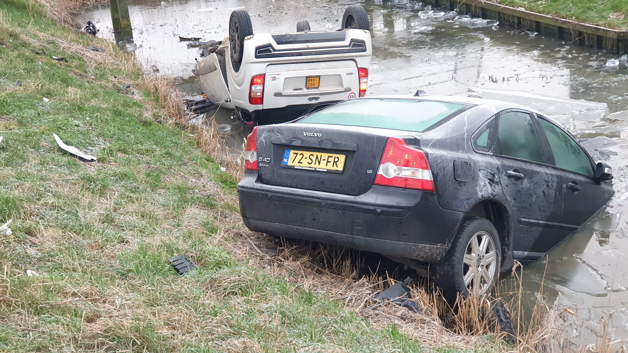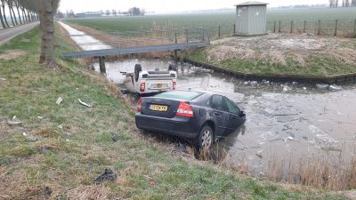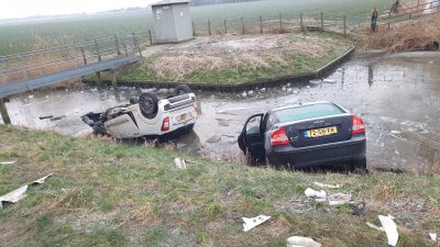 Het betrof een brommobiel en een gewone auto die in botsing kwamen. Beide bestuurders eindigde in de bevroren sloot. Zij kwamen er zonder letsel vanaf, wonder boven wonder. Er kwam wel een ambulance naar de plek van het ongeval. Maar bij een boerderij, waar de betrokkenen werden opgevangen, bleek uit een controle dat ze niet gewond waren geraakt.