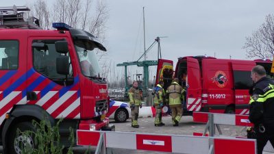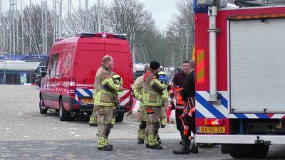 Deze man hield zich vast aan een boom. Zwaar onderkoeld is hij door de brandweer gered en er uitgehaald. Een ambulance bracht hem naar ziekenhuis.