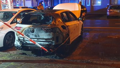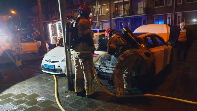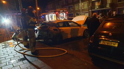 De auto is verwoest, total loss. De brandweer was er snel en kon voorkomen dat de auto’s er naast ook beschadigd zouden raken. Politie heeft al wat onderzoek gepleegd, vermoeden van brandstichting is groot.