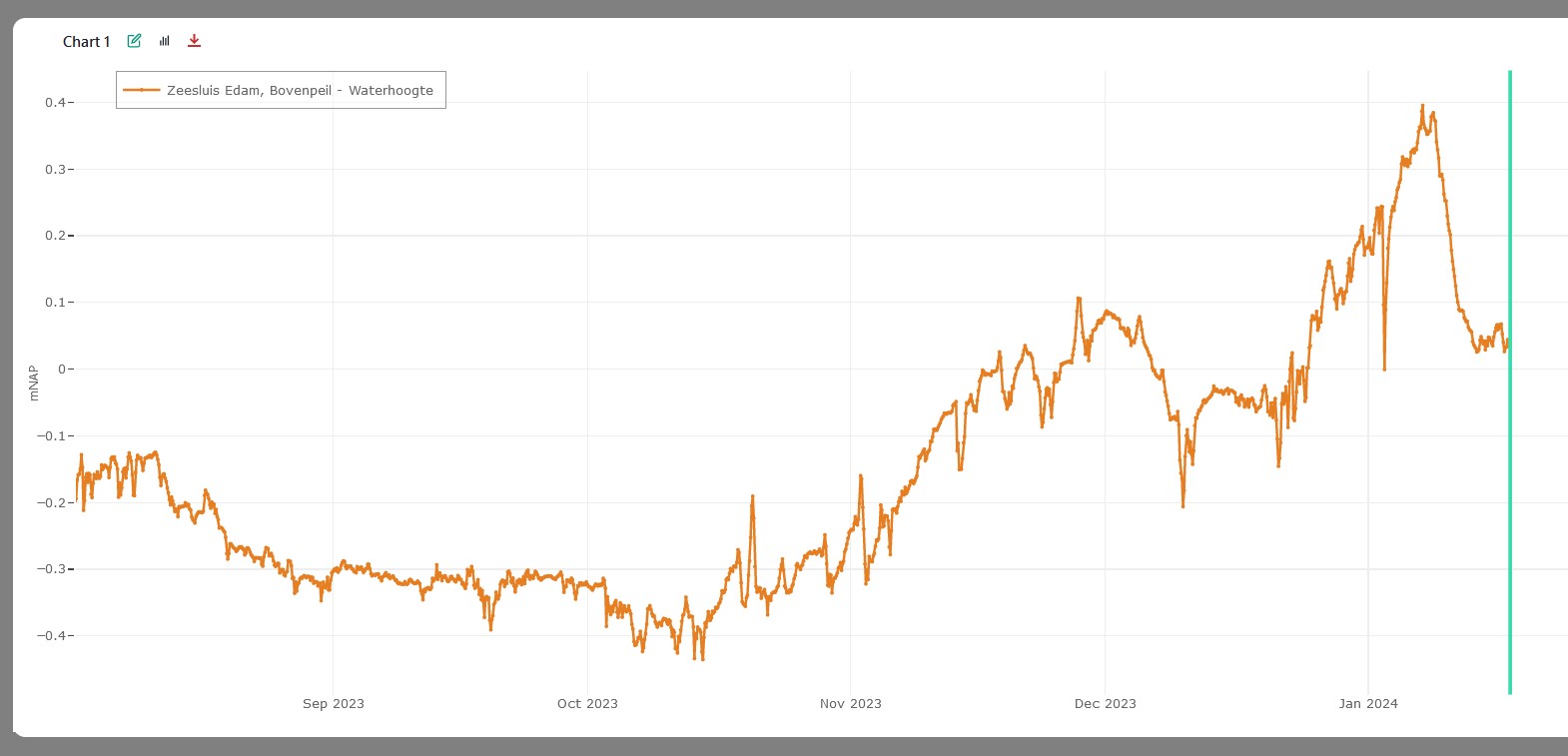 Je ziet toch duidelijk aan de grafiek die Henk leverde dat medio oktober het waterniveau bij Edam nog onder -40cm zat? Daarna begonnen de problemen en steeg het niveau gestaag.