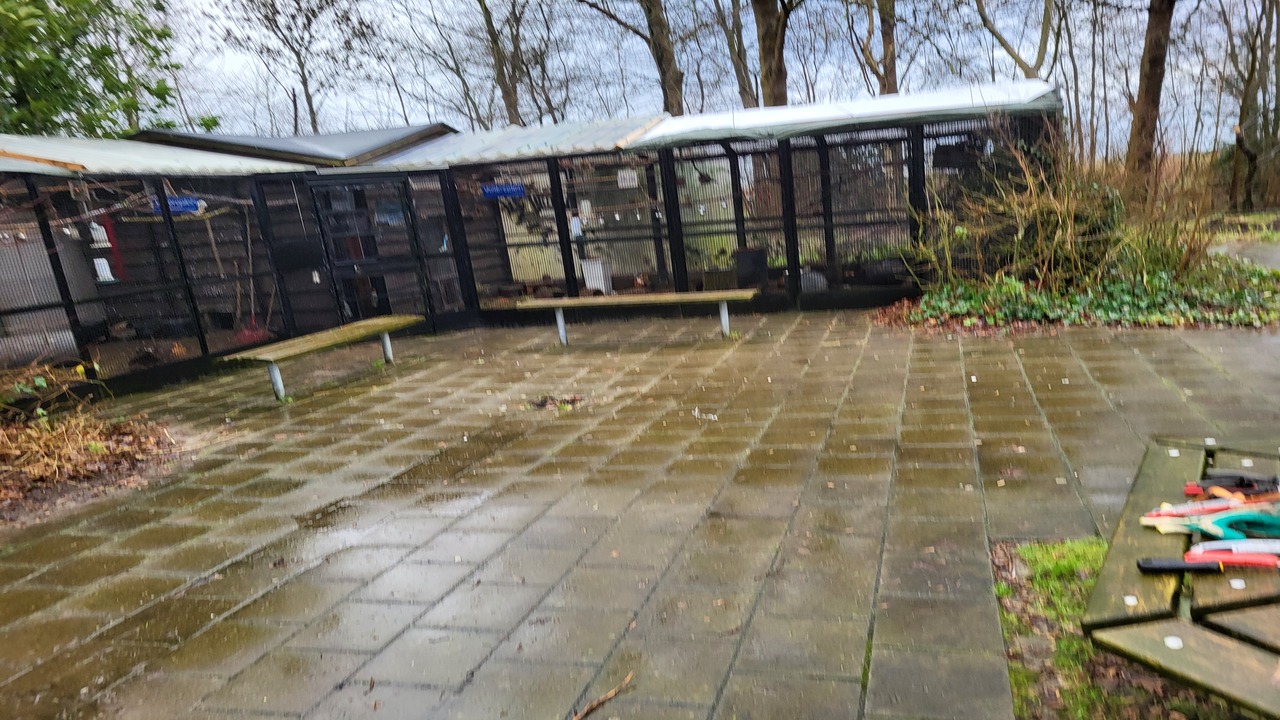 De volière in het wijkpark is weer voorzien van nieuwe zeilen.
