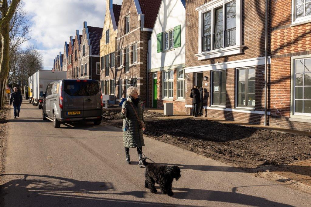 Nu ook de laatste woningen aan ’t Marken zijn opgeleverd is het er een drukte van jewelste. Overal zijn werklui bezig met stukadoren, schilderen en vloeren leggen. De bouwrijplaten maken plaats voor de stratenmakers en verhuizers sjouwen meubels en dozen naar binnen. Een aantal huizen is al volledig ingericht en wordt bewoond. En dat allemaal onder het toeziend oog van de constante stroom wandelaars die tijdens een rondje Vesting een nieuwsgierige blik in de huizen werpt. Foto: Marianne Klok.