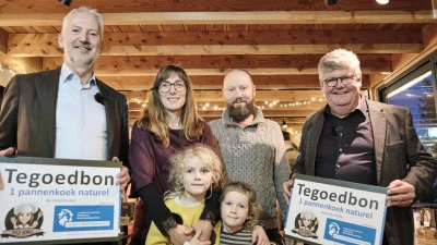 De Alliantie Markermeerdijken en het Hoogheemraadschap Hollands Noorderkwartier hebben de bewoners bedankt met tegoedbonnen van een pannenkoekrestaurant langs de dijk. Sanne Hijlkema uit Schardam mocht gisteravond als eerste de tegoedbonnen in ontvangst nemen. Zij fietst per dag twee keer op en neer vanuit haar woonplaats naar de school van haar kinderen in Hoorn, en moest jarenlang een alternatieve route nemen. Ze is blij dat zij nu weer de snelste route naar het noorden kan nemen met haar bakfiets.