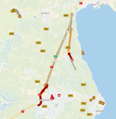 Rond 09.00 uur heeft er een ongeval plaatsgevonden op de rechterrijbaan van de A7 ter hoogte van Zuidoostbeemster. Hierbij ligt een vrachtwagen geschaard over de weg.