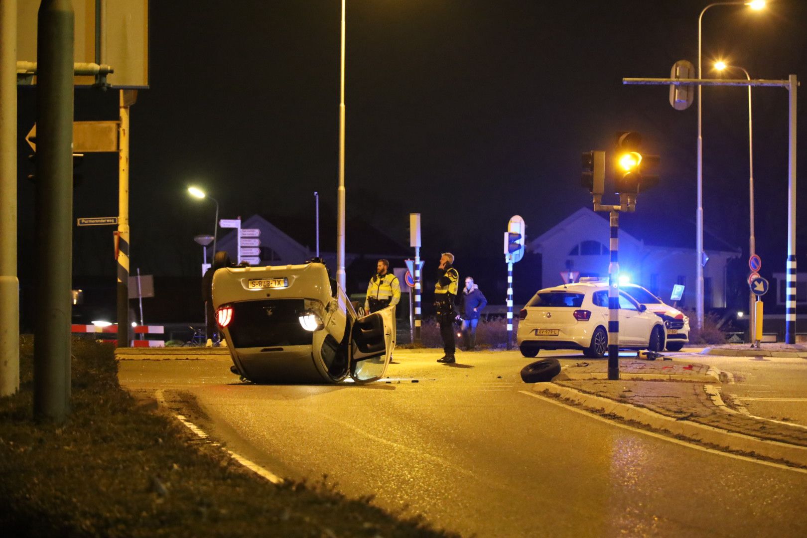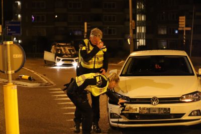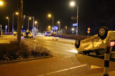 Bij de aanrijding raakte een automobilist de andere auto met de rechter voorkant. De andere auto knalde vervolgens tegen een dwangpijl, en kwam op de kop tot stilstand.