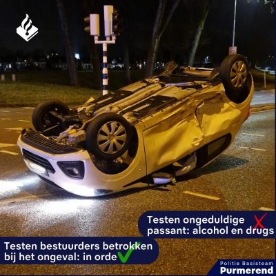 De vrouw, dus niet betrokken bij het ongeval, werd onderworpen aan een controle wat resulteerde in een aanhouding vanwege het rijden onder invloed van alcohol en drugs. Haar rijbewijs, die zij net enkele maanden had, werd ingevorderd.