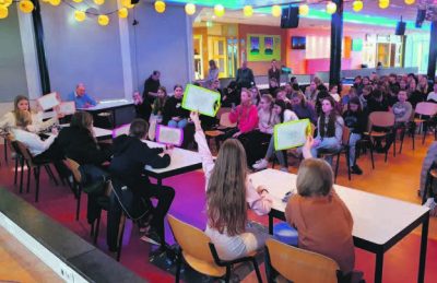Prof. dr. Femke van Horen (Behavioural Lab, Vrije Universiteit Amsterdam) opende met een gastcollege over hoe je het gedrag van mensen kunt beïnvloeden zonder iets te verbieden. Let eens op kleurgebruik bij borden, hoe ruimtes zijn ingedeeld en de keuze voor iets als het donorschap. Vervolgens mochten de leerlingen aan de slag bij verschillende workshops. In de keuken werd er gesneden, gemixt, verwarmd, geroerd en geëxperimenteerd met meerdere smaakexplosies, groene olie en het maken van kaviaar van frambozen- en balsamicoazijn.