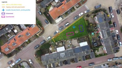 - Een nieuwe boom terug te plaatsen, omdat die vorig jaar is omgewaaid. Maar dan iets verder naar de stoep zodat zonnepanelen meer zon overhouden als hiervoor! ☀
