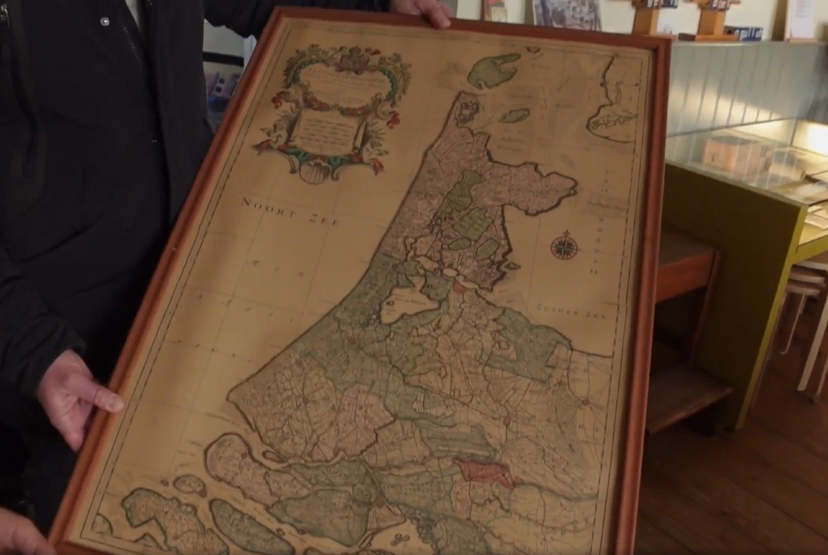 Al sinds de opening van Het schooltje van Dik Trom in Etersheim zoekt men al naar deze bijzondere schoolplaat. Het gaat om de kaart van Nederland zonder Afsluitdijk en Bas van Gelderen laat de langgekoesterde wens eindelijk in vervulling gaan. “Je maakt ons er ontzettend blij mee”, zegt Petra Lange van het museum enthousiast tegen de gulle gever.