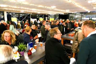 Op dinsdag 27 februari organiseert Rijkswaterstaat een inloopbijeenkomst voor bewoners en ondernemers vanwege de werkzaamheden aan de A7. Om 17.00 uur is het gelijk erg druk in Sportcafé De Beuk aan de Van IJsendijkstraat. Er zijn borden met informatie en tekeningen geplaatst. Medewerkers van Rijkswaterstaat geven antwoord op de vele vragen die gesteld worden, maar helaas kunnen niet alle vragen gelijk beantwoord worden. Het wordt zo druk dat zelfs bij de borden al filevorming ontstaat. Foto: Piet Jonker – www.weidevenner.nl.