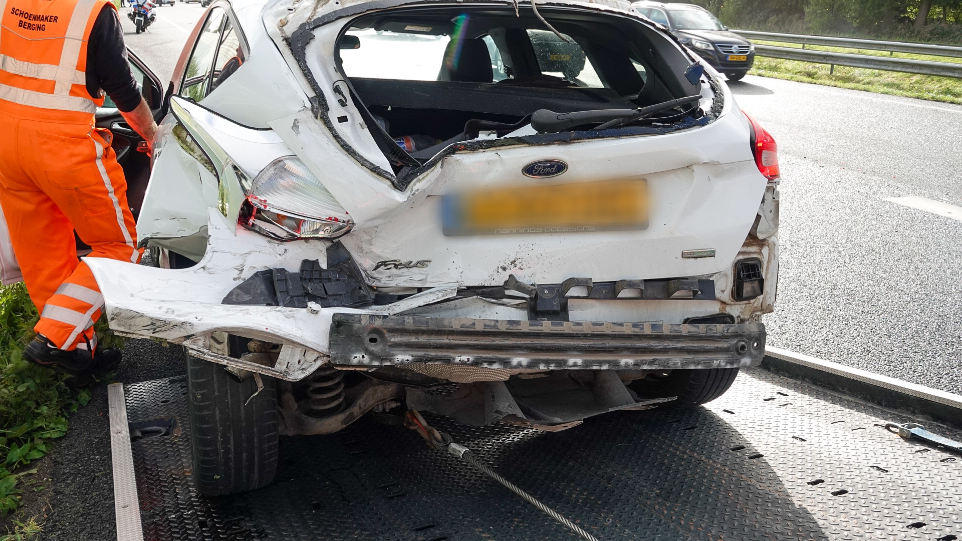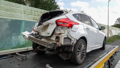 De personenauto spinde na de aanrijding en kwam tegengesteld tot stilstand. Beide voertuigen raakte zwaar beschadigd.