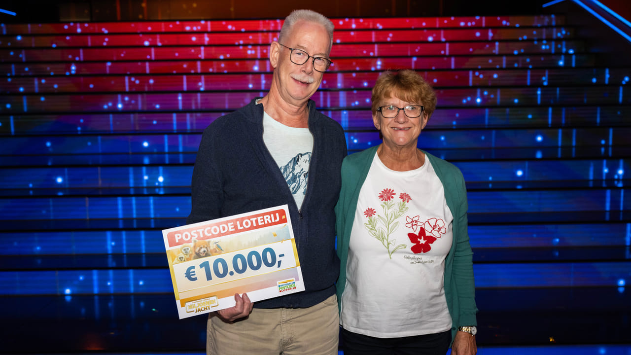 Kees uit Purmerend heeft zondagavond €10.000 gewonnen in het tv-programma Postcode Loterij Miljoenenjacht, dat werd uitgezonden bij SBS6. Samen met 49 wijkgenoten was hij aanwezig in de studio, waar dit seizoen in het teken staat van het 25-jarig jubileum van het programma. Foto: Jurgen Jacob Lodder
