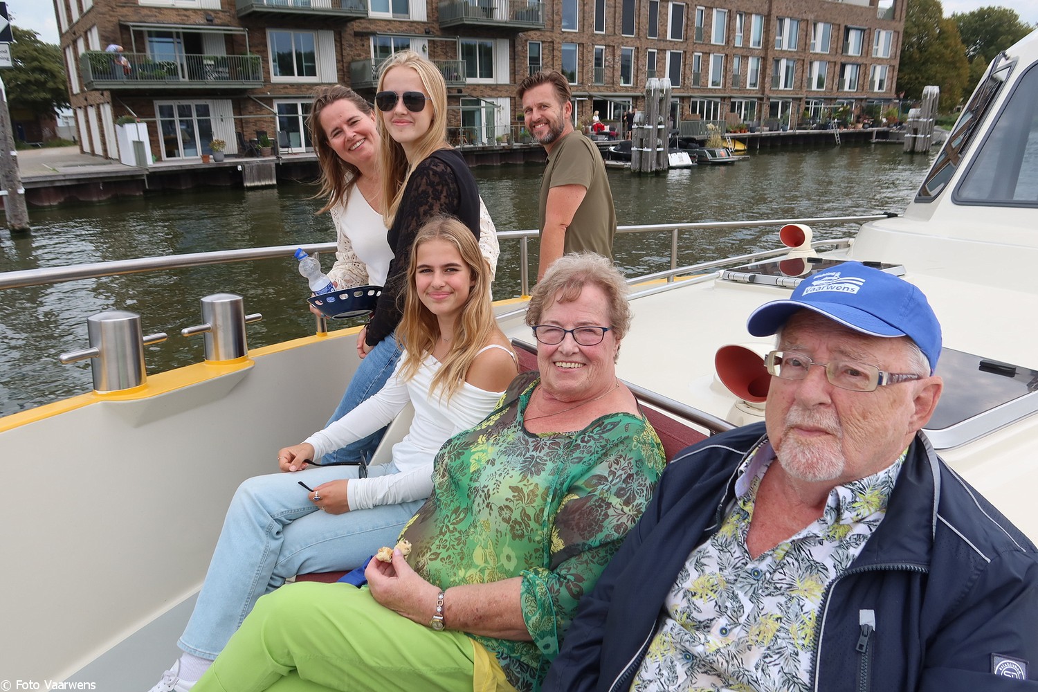 Onze vaargaste Renel en haar man Gert kwamen samen met dochter Martie en haar man Bram uit de eerste auto. Kleindochter Esmee mocht de andere auto besturen en bij haar zat haar zusje Liza. Het was gelijk pret op de parkeerplaats; vragen of we foto’s mochten maken en of die ook gepubliceerd mochten worden, meneer, mevrouw, U of voornamen, het was allemaal zo klaar en er werd lekker ontspannen gelachen en de vaardag moest nog beginnen.