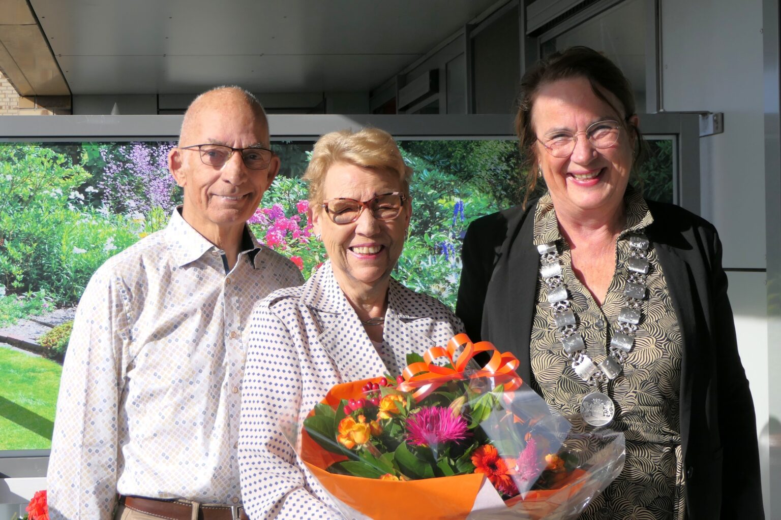Martin Hijstee en Mary Deschan, beiden nu 81, trouwen op dinsdag 23 september 1965 voor de wet en gaan na het kerkelijke huwelijk wonen in het steeds verder groeiende Purmerend, waar dat jaar de oude Weere wordt gedempt. Zestig jaar, twee kinderen en vier kleinkinderen later, op woensdag 24 september 2025, komt burgemeester Van Selm op visite met een grote bos bloemen om het stel te feliciteren met hun diamanten huwelijk. Foto: Piet Jonker – www.weidevenner.nl.