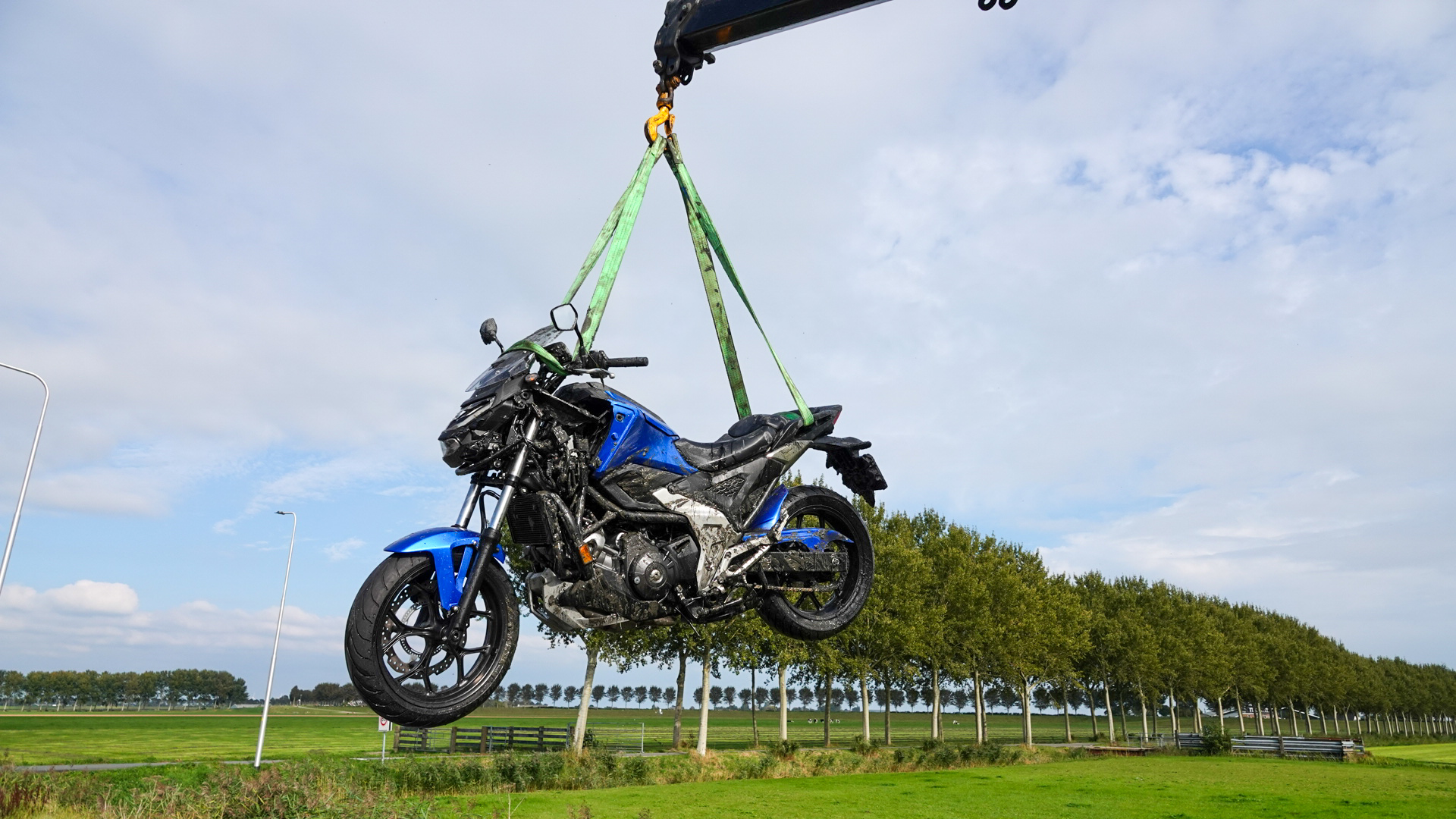 De weg is enige tijd afgesloten geweest. De motor heeft in het water een hoeveelheid vloeistof gelekt.