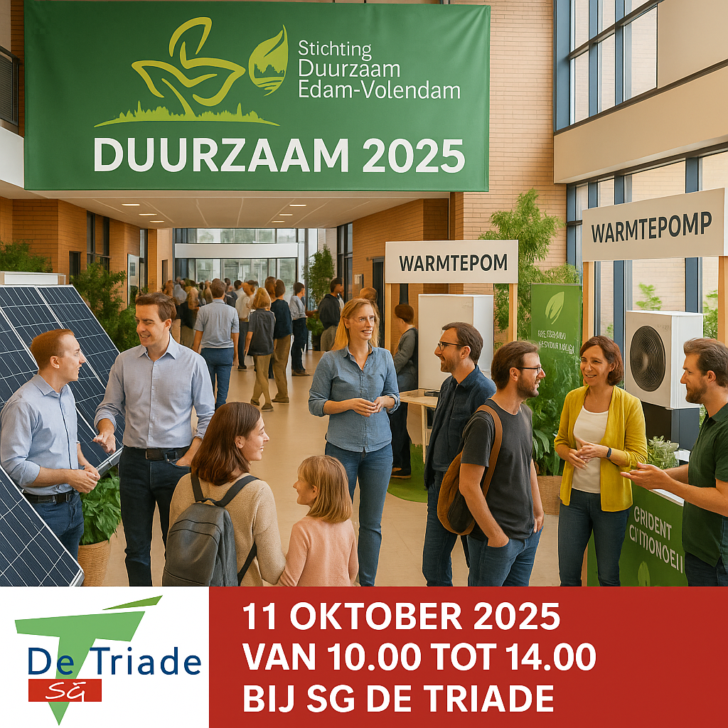 Op zaterdag 11 oktober organiseert Stichting Duurzaam Edam-Volendam (DEV) een Duurzaamheidsbeurs. Inwoners en ondernemers krijgen hier praktische oplossingen om energie te besparen, kosten te verlagen en duurzamer te wonen of werken.