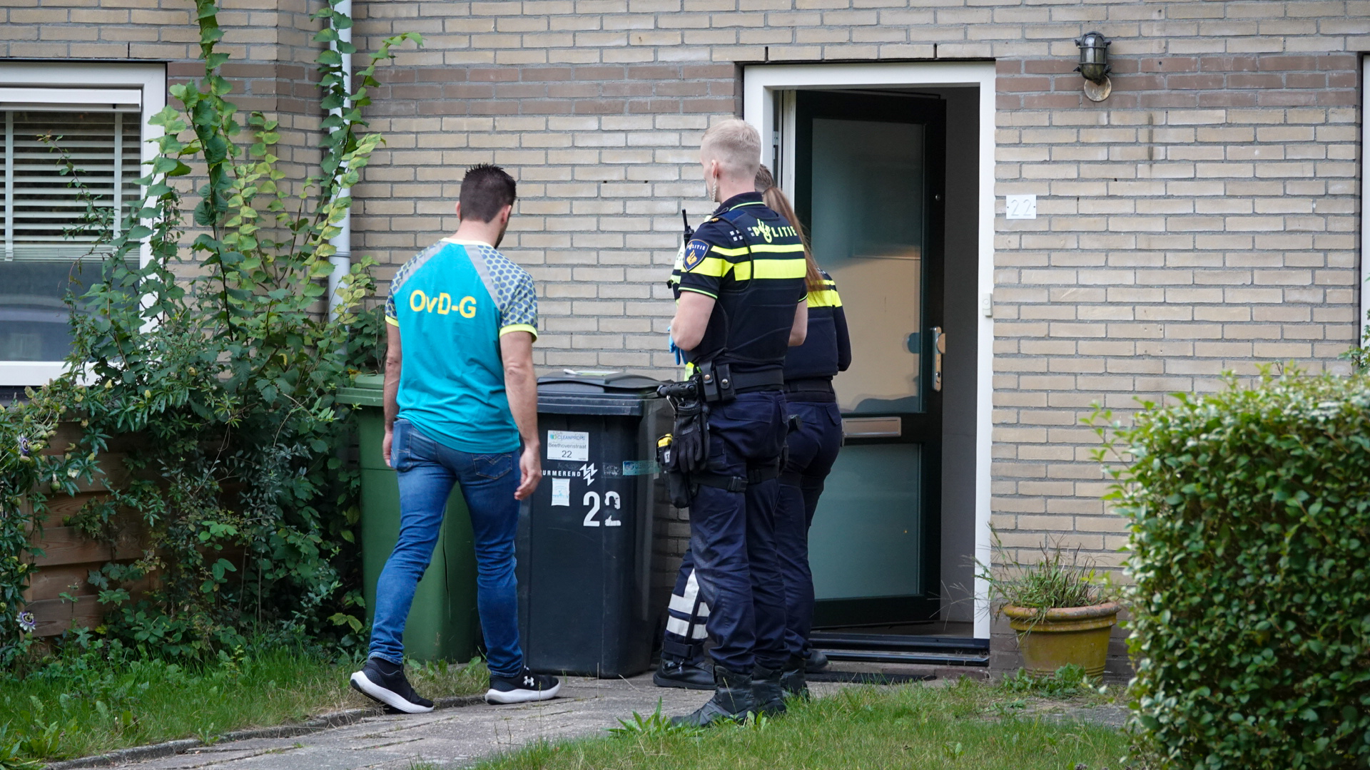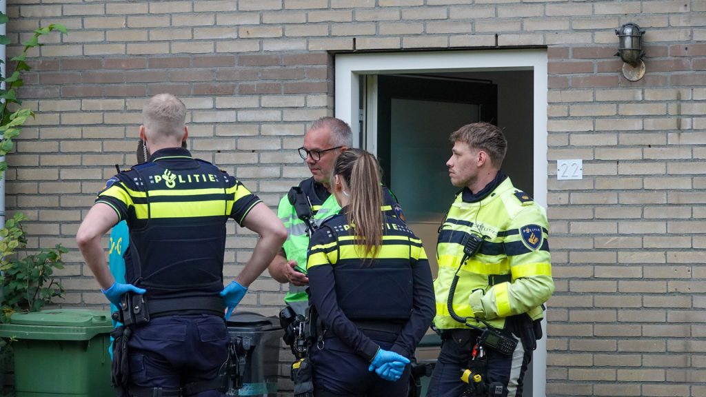 De Forensische Opsporing van de politie is begonnen met het sporenonderzoek in en rond de woning, de straat is afgelint en aangemerkt als Plaats Delict.