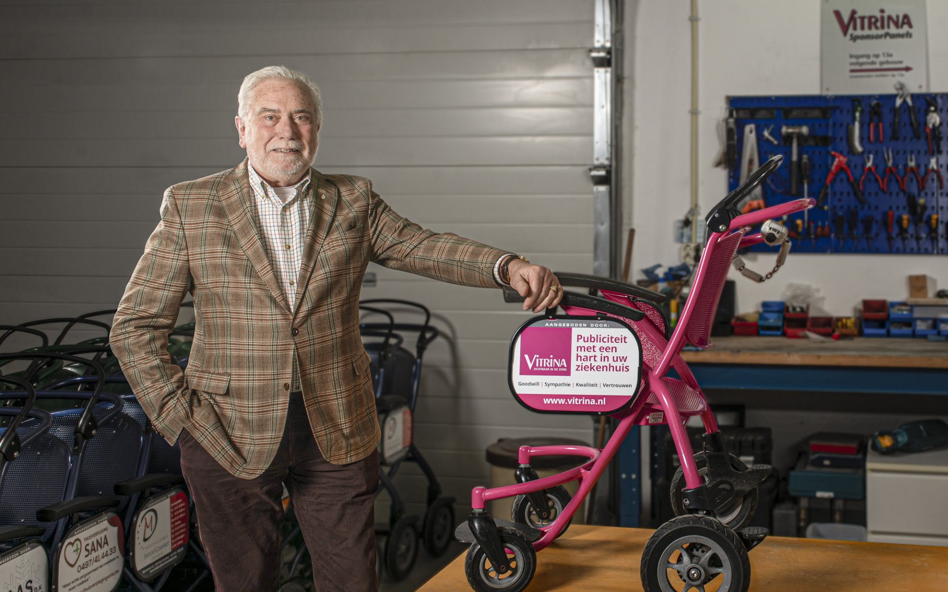 Jos Bookelman zet zich met de medewerkers van zijn bedrijf Vitrina elke dag in om ruim 2200 duwstoelen gratis beschikbaar te houden voor bijna alle ziekenhuizen in Nederland en Vlaanderen. Samen met adverteerders en sponsors maakt hij dit al ruim 32 jaar mogelijk.