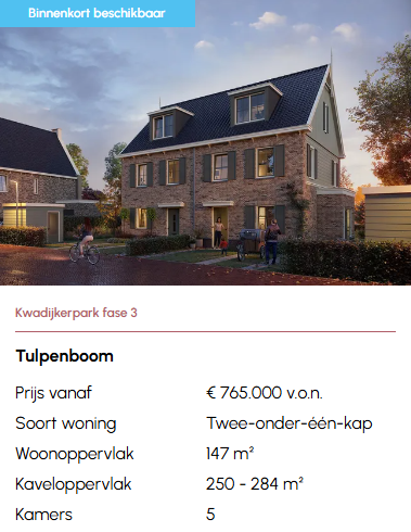 Zo ontstaat een eigentijdse wijk met een sterke regionale identiteit. Wonen in Kwadijkerpark betekent leven te midden van volwassen bomen, waterpartijen en groenstroken met ruimte voor ontmoeting en verbondenheid. Autoluwe straatjes, hofjes en speelplekken maken het een veilige en prettige omgeving voor jong en oud. En dat alles op korte afstand van Amsterdam: de dynamiek van de stad is altijd dichtbij, terwijl je thuis geniet van rust, ruimte en natuur.