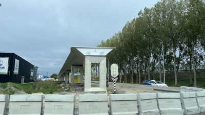 De nieuwe fietsbrug tussen de Noorder IJ- en Zeedijk en bedrijventerrein het Ambacht in Oostzaan over de Thorbeckeweg (N514) begint vorm te krijgen. Aan de noordkant (boven) is de brug al bijna klaar. Aan de zuidkant (richting Noorder IJ- en Zeedijk) is de aanbouw van de steunpilaar begonnen.