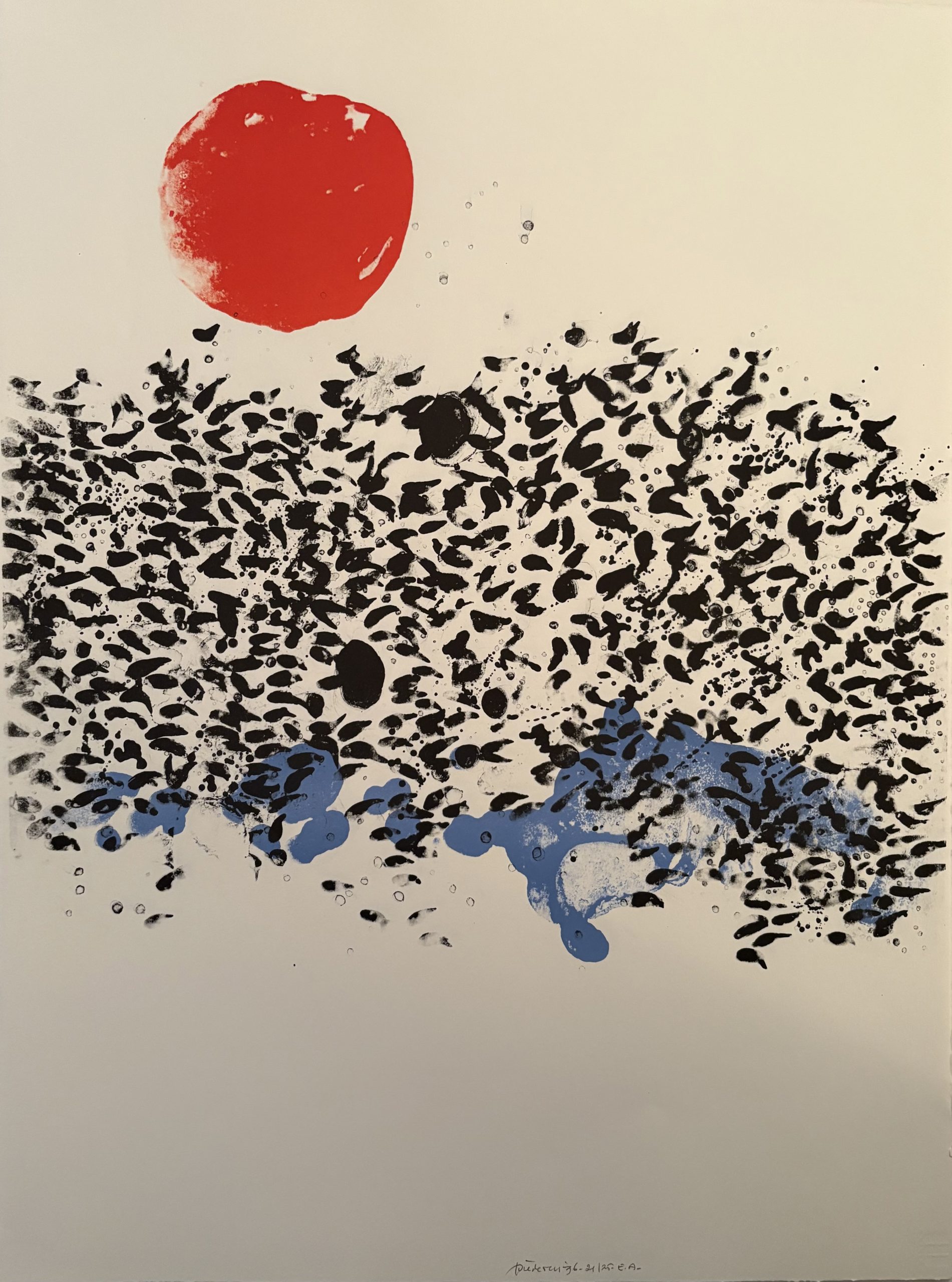 Beeldend kunstenaar Sonja Besseling beheert de nalatenschap van Jef Diederen. Sonja: “Hij was een van de Amsterdamse Limburgers – met Ger Lataster, Pieter Defesche en Lei Molin – die in de Tweede Wereldoorlog naar Amsterdam kwam voor studie. In zijn jonge jaren tekende hij vooral landschappen uit zijn geboortestreek in Zuid-Limburg. Daarna ontwikkelde hij zich verder in abstracte richting. Zijn werk is te bestempelen als lyrisch-abstract en heeft, ondanks sterke kleuren, een vriendelijke en zachte uitstraling. Diederen is een van de meest vooraanstaande grafische kunstenaars van na de Tweede Wereldoorlog. Zijn werk is te vinden in vele musea. Het Rijksmuseum heeft al 185 verschillende grafieken in hun vast collectie. Zijn grafisch werk werd veelal verrijkt met gedichten van Lucebert en Bert Schierbeek. De tientallen werken die we in de Grote Kerk verkopen zijn merendeels speciaal genummerd met bijvoorbeeld E.A.: Epreuve d’Artiste. Het is een bijzondere kans om voor een heel laag bedrag iets van zijn gevarieerd werk te kunnen kopen.”