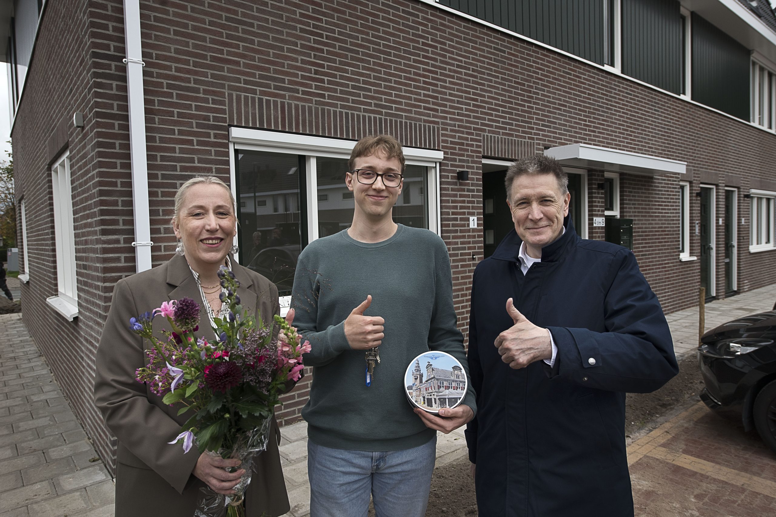 Deze 21-jarige starter verhuist binnenkort naar een van de negen sociale huurappartementen in het nieuwe wijkje de Poelhof. Deze feestelijke sleuteloverdracht markeert de oplevering van de nieuwe woningen aan de Nieuwpoortslaan in Monnickendam. Menno Weerman: “Ik ben ontzettend blij dat ik hier mijn eerste huurwoning heb gevonden. Ik sta al drie jaar ingeschreven en heb in die tijd voldoende zoekpunten opgebouwd door actief te reageren op woningen. Het voelt heel goed dat dit nu beloond wordt met een eigen plek.”