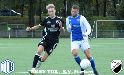 In de pauze had een speler van TOB een rode kaart ontvangen en moesten ze het tweede bedrijf met tien man de wedstrijd verder uitspelen. Bij Marken was Tijme Kes achter gebleven in de kleedkamer en voor hem was Viggo Teerhuis binnen de lijnen gekomen. In de 52ste minuut was de thuisploeg op gelijke hoogte gekomen door Gijs Boerwinkel 2-2. Waarschijnlijk had Sebastiaan Peereboom aanmerkingen op de leiding en kreeg daarvoor een gele prent. Lang gebeurde er weinig pas in de laatste 20 minuten van alles. Eerst in de 72ste kwam Marken weer op voorsprong dor Joey Tol 2-3 en werd Niels van Veen vervangen door Koen Visser. De thuisploeg grossierde in drie gele kaarten.