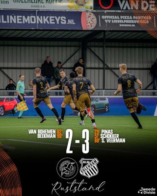 Na ruim tachtig minuten spelen kwam dan toch de treffer voor IJsselmeervogels. Van Bohemen probeerde het met een zwak schot, maar het kreeg een onverwachte draai en veranderde van richting. De bal plofte achter een kansloze Lauwers: 1 – 2.
