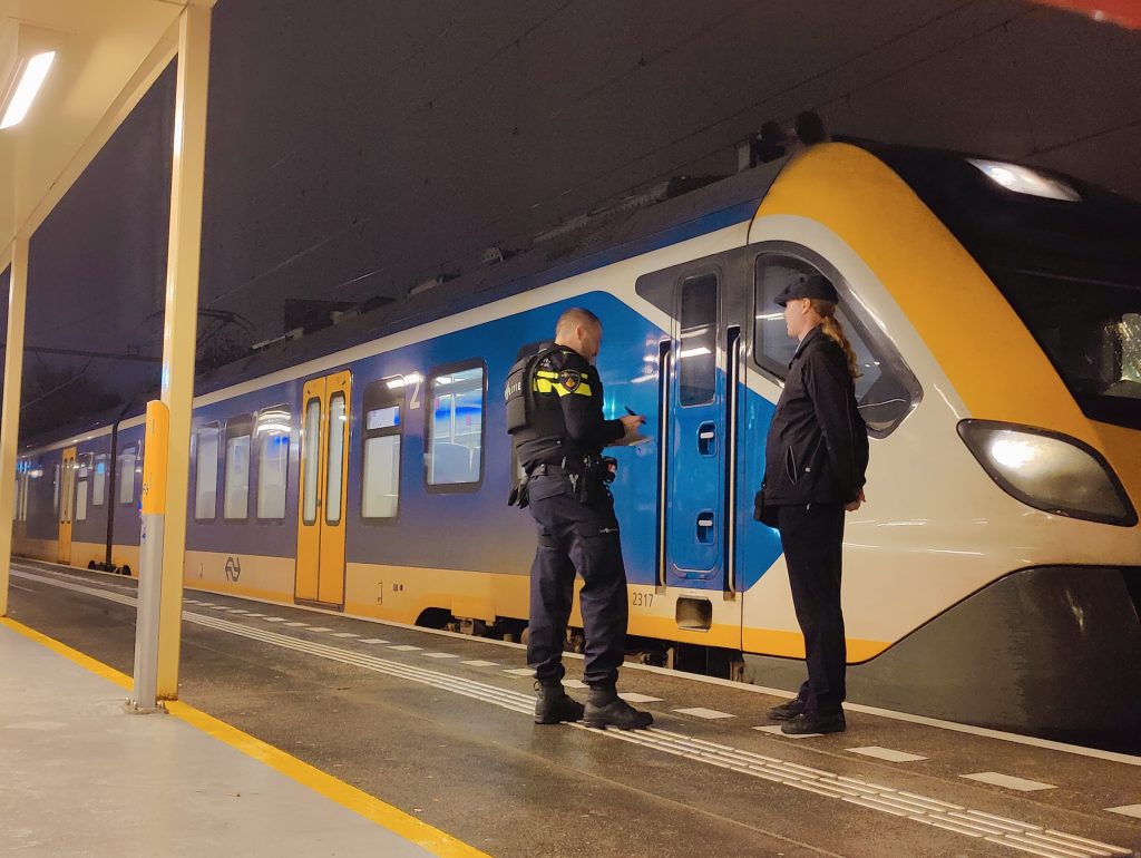 Agenten met kogelwerende vesten halen man uit trein bij Station Purmerend Overwhere Geplaatst op vrijdag 14 november 2025vrijdag 14 november 2025 door admin bron: Inter Visual Studio Treinstation Purmerend Overwhere, 3 politie en 6 agenten met kogelwerende vesten. 1 persoon geboeid uit de trein gehaald. Treinen gestremd. Foto’s: Inter Visual Studio