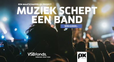 Poppodium PX en het VSBfonds slaan de handen ineen en roepen bands en acts op om mee te doen met de wedstrijd Muziek schept een Band. De winnaar ontvangt maar liefst €2000 om een maatschappelijk muziekproject uit te voeren.