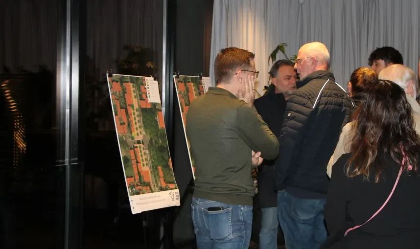 Tientallen belangstellenden waren donderdag 30 oktober naar de informatieavond gekomen. Vooral omwonenden en belanghebbenden als (horeca) ondernemers en ouderen. Allen met hun eigen aandachtspunten. Een voormalig gemeentewerkman betwijfelde de noodzaak tot bomenkap en vervanging van de traditionele ‘wagenwielsteen’ naast de smederij. “Met goed onderhoud kunnen de bomen nog jaren mee. De steen is geen molensteen maar behoort bij de smidse om houten wagenwielen te voorzien van een ijzeren band.” Anderen wezen weer op het storend getik van de verkeerslichten op het kruispunt: “Het gaat dag en nacht door. Ik ben nog goed horend en het komt flink bij me binnen”, aldus een bewoonster. Ook vertegenwoordigers van de horeca rond het plein zijn present. Zij hebben met name belangstelling wat de opknapbeurt betekent voor hun terras, de parkeergelegenheid en de mogelijke beperkingen tijdens de Beemster Feestweek. Alle opmerkingen worden keurig genoteerd.