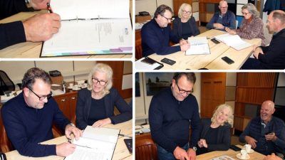De ondertekening vond plaats bij Altena Yachting in Raamsdonksveer, in aanwezigheid van het bestuur van Stichting Vaarwens, oprichters Inge de Graaf en Evert Stel alsmede Maurice Pols, directeur en Wouter Volder, projectbegeleider van Altena Yachting en Dirk-Jan van Geemen van de bouwcommissie Vaarwens.