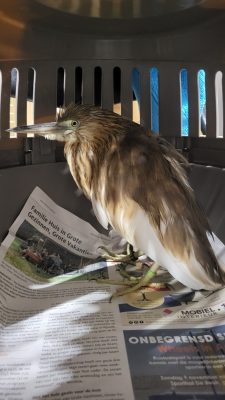 Gister is er bij onze meldpost een Indische Ralreiger binnengebracht. Deze bijzondere en zeldzame soort komt normaal gesproken alleen in Azië voor, waardoor wij zeer verrast waren dat dit unieke dier in het Hemmeland in Monnickendam werd aangetroffen. De vogel droeg een groene ring om de linker poot en een zwarte ring om de rechter poot.