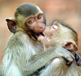 Elke zichzelf serieus nemende krant besprak deze week een recente publicatie in het tijdschrift Evolution and Human Behaviour over de evolutie van het zoenen. Engelse en Amerikaanse onderzoekers hebben alle gegevens over het zoenen van apen en andere zoogdieren bij elkaar geraapt en daaruit afgeleid wanneer het is ontstaan. Ze komen dan op 21 miljoen jaar geleden. Het is een oud kenmerk van de mensapen, hoewel niet alle mensapen het doen. Maar zeer waarschijnlijk deden ook de voorouders van de mens het al. Maar wat is de functie? De onderzoekers proberen een verband te leggen met het seksuele systeem van de diersoorten, maar daar komen ze niet uit. Ze konden natuurlijk niet weten dat ik al jaren geleden een column geschreven heb over de evolutie van het tongzoenen. Dat stukje herhaal ik hier even; het verscheen op 23 september 2011 in het Noord-Hollands Dagblad en is ook te vinden in mijn boekje “Het meisje, de vrek en de cicade”, verschenen in 2012.