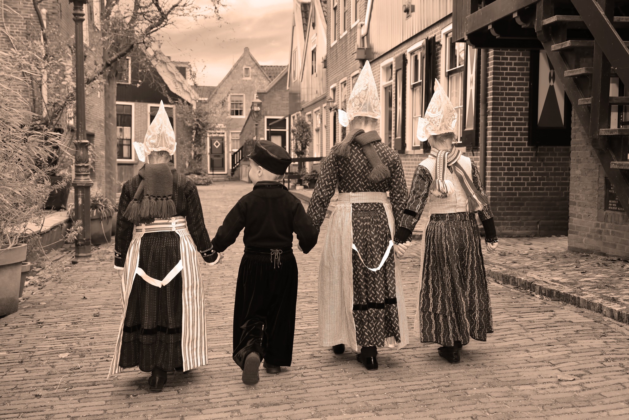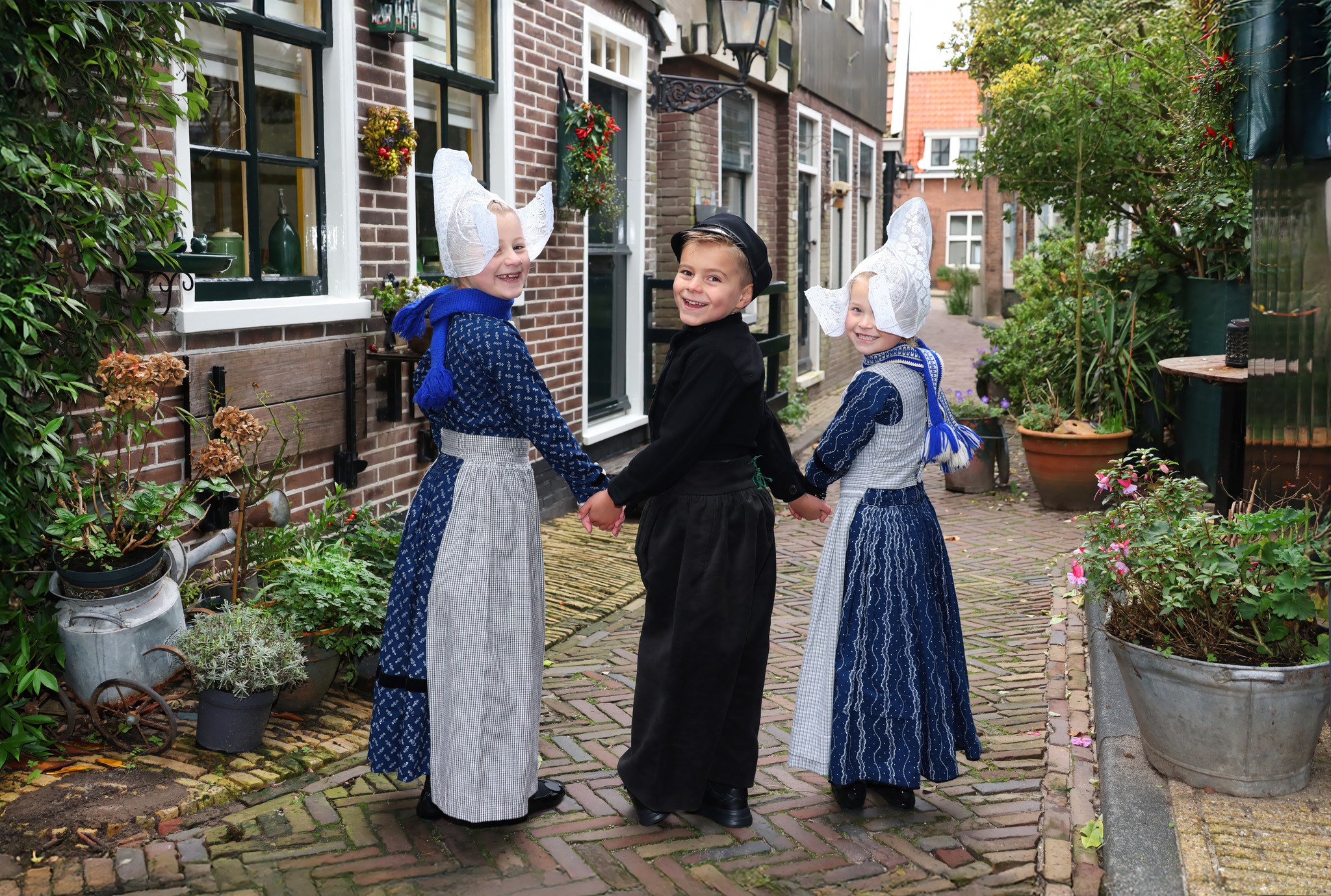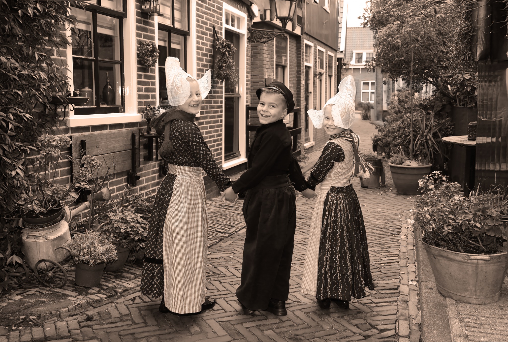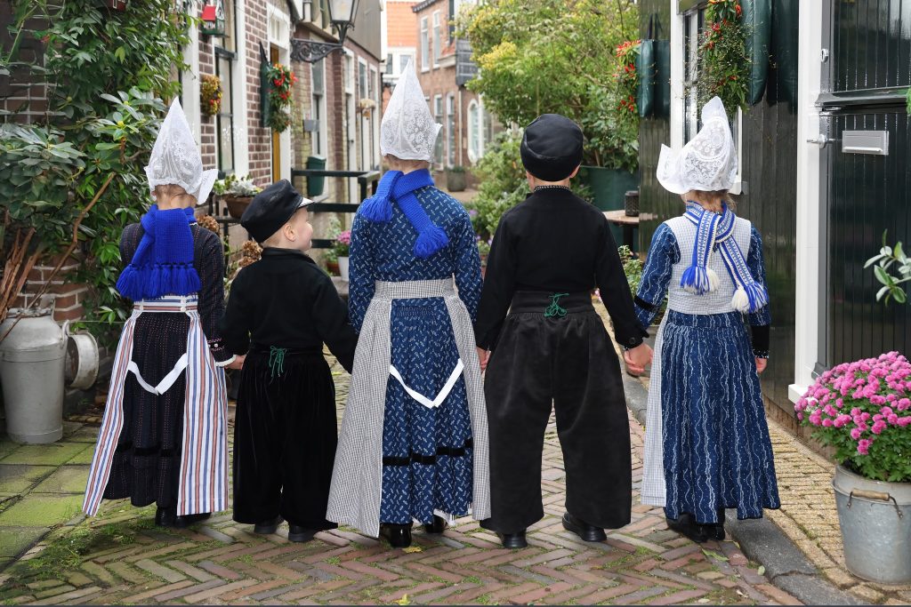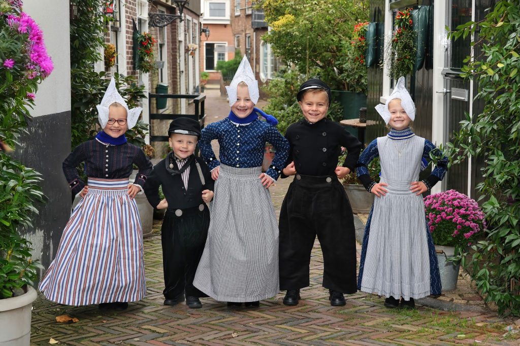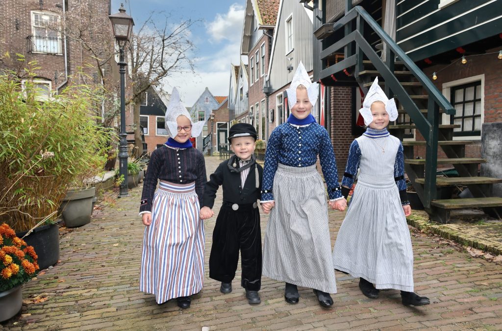 Afgelopen week maakte ik foto’s van Volendamse kinderen in onze klederdracht. Uiteraard waren de Volendammer klederdracht specialisten Yoni Runderkamp en Simone Brinkkemper hier met hun kinderen bij vertegenwoordigd. Drie van de Volendammertjes waren uitgedost in de door superspecialist Aaf Sombroek vervaardigde Volendamse klederdracht, zoals die gedragen werd tussen 1900 en 1950. We hebben de foto’s gemaakt in het oercentrum van oud-Volendam; het “Doolhof”; vooral bij de sepia of zwart wit foto’s waan je je daar dan zo’n 100 jaar terug in de tijd. Ik kan zelf bijna geen genoeg krijgen van deze plaatjes.